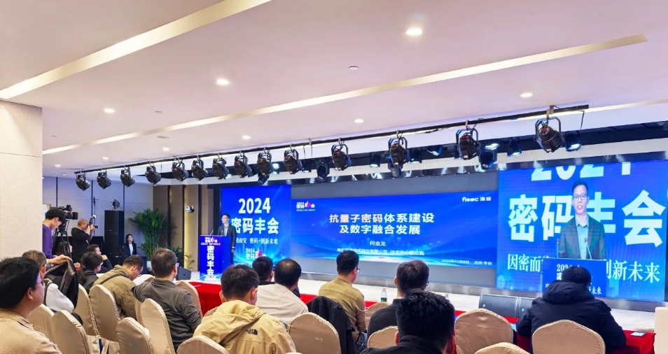会议聚焦商用密码前沿技术和应用创新,前瞻行业动态。主题演讲环节,奥林匹斯之门 pp电子奥林匹斯之门信息北京公司技术总监何金龙发表《抗量子密码体系建设及数字融合开展》主旨演讲,向与会人员阐述抗量子密码技术的开展趋势、奥林匹斯之门 pp电子奥林匹斯之门信息的抗量子“密码+”体系建设,以及公司在电力、物联网、金融等多个监控场景的实际应用案例。